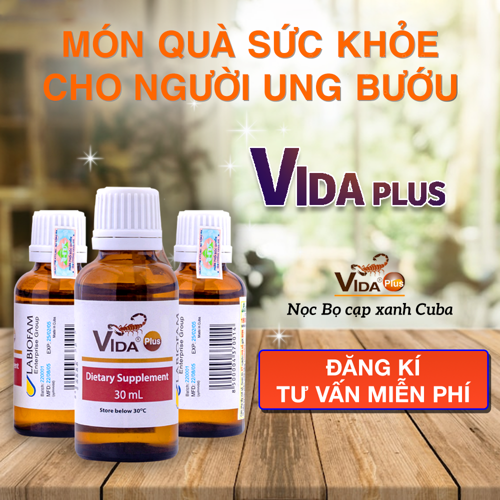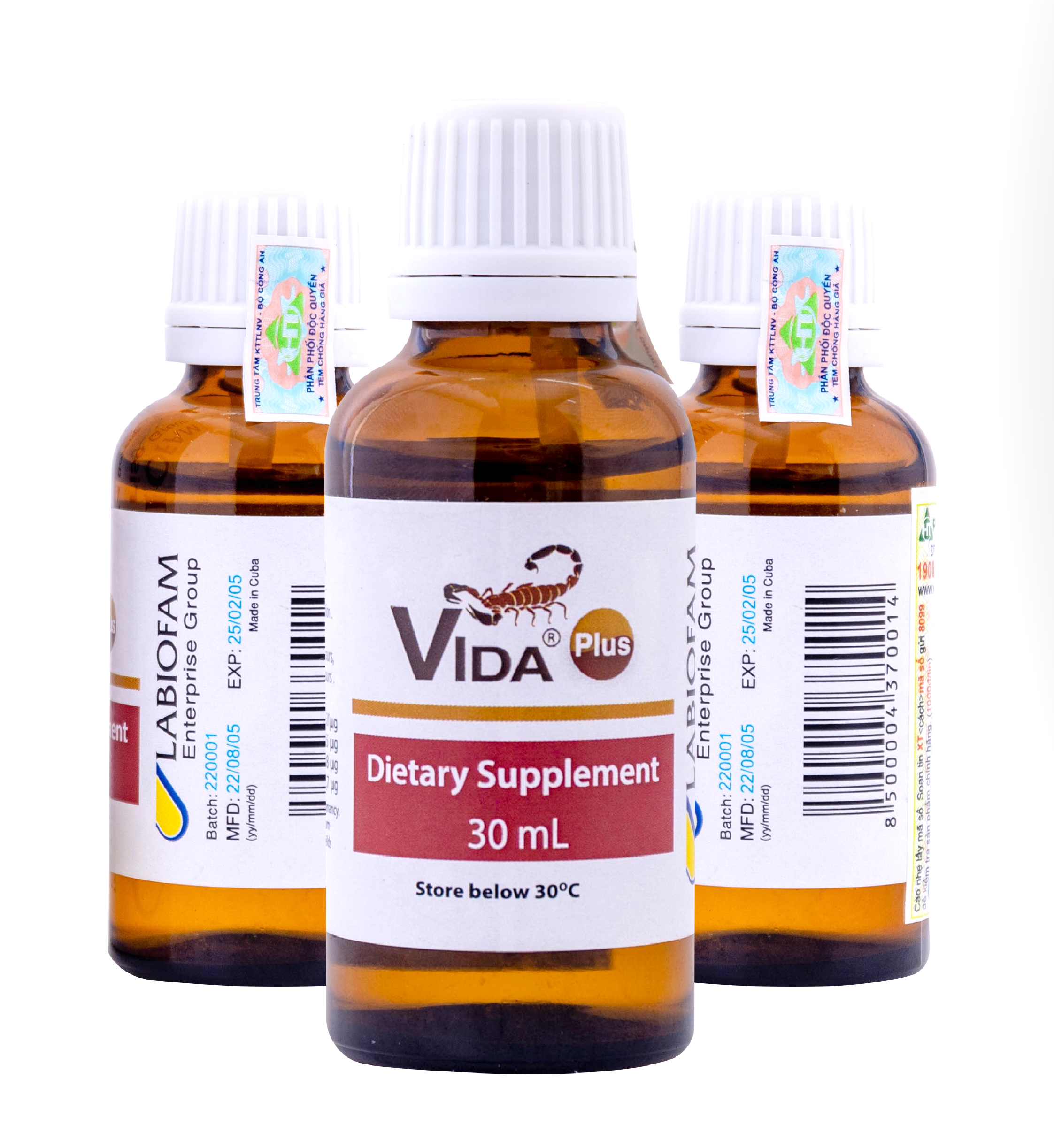 Vida Plus là sản phẩm có dung dịch cồn chứa nọc bọ cạp xanh Cuba (tên khoa học Rhopalurus Junceus), giúp cho người bị u bướu tăng sức đề kháng và hỗ trợ cải thiện thể trạng.