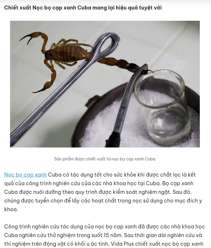 Vida Plus - Thực phẩm bảo vệ sức khỏe từ nọc bọ cạp xanh Cuba được bộ Y tế cấp phép