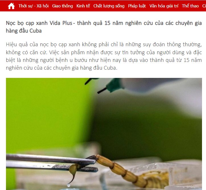 Nọc bọ cạp xanh Vida Plus - thành quả 15 năm nghiên cứu của các chuyên gia hàng đầu Cuba
